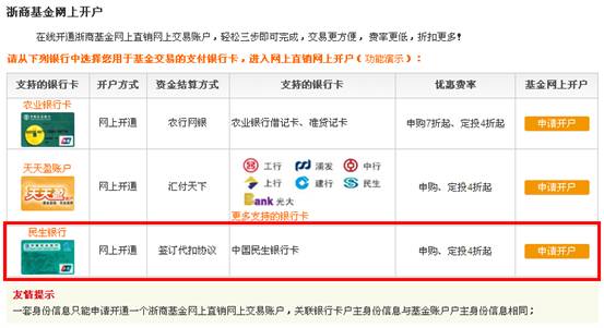 第二步:登陸浙商基金,選擇銀行卡開戶