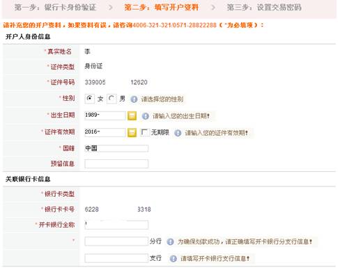 輸入交易密碼后,開戶成功。