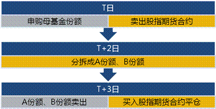 如當(dāng)分級(jí)基金二級(jí)市場整體大幅溢價(jià)時(shí),投資者可以場內(nèi)申購基礎(chǔ)份額,并且賣空股指期貨,在T+2日將基礎(chǔ)份額分拆,T+3日賣出分級(jí)份額,并將股指期貨平倉。